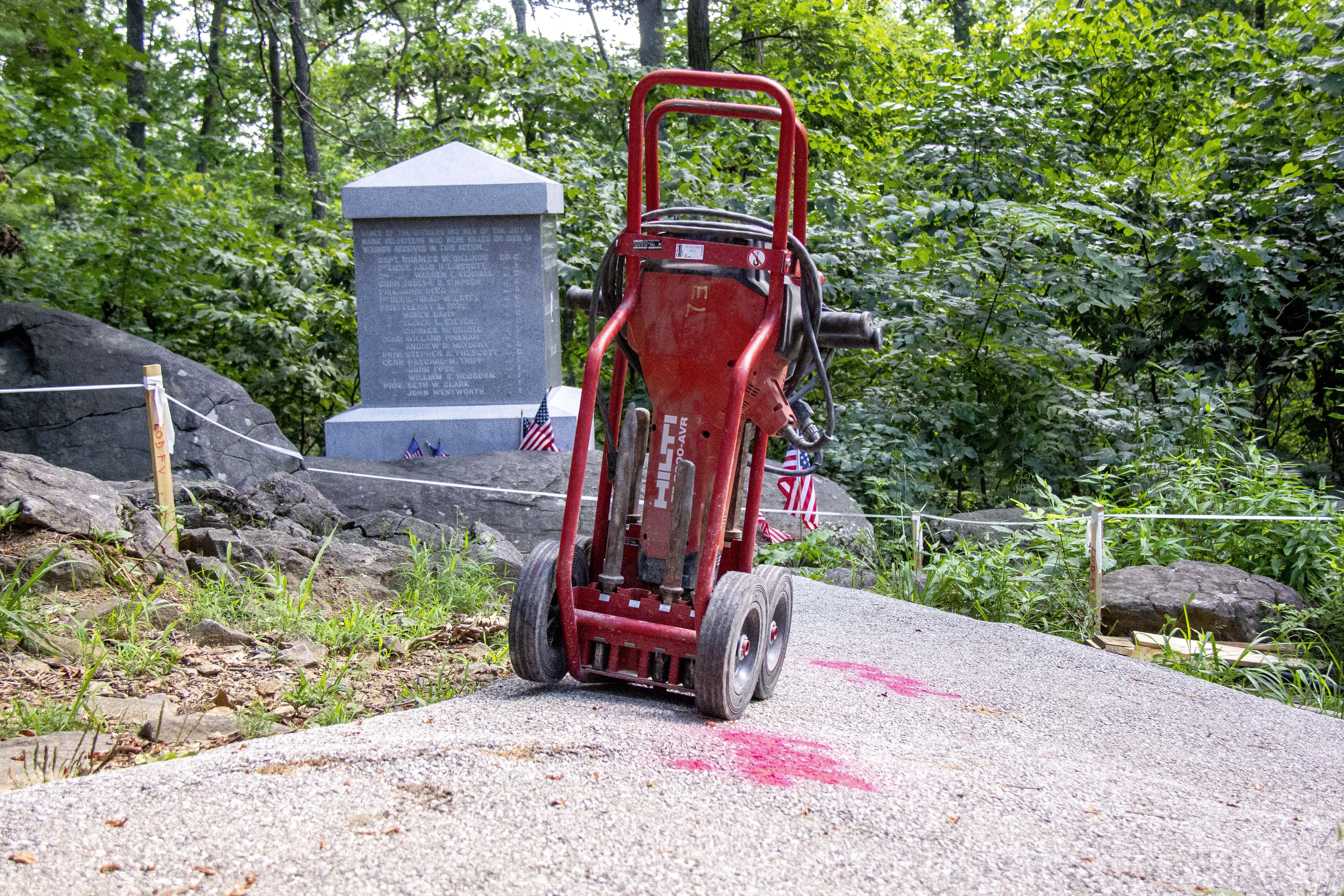 Jack hammers will be used to break up the old pathways near the 20th Maine monument.