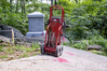 Jackhammers on the asphalt path leading to the 20th Maine monument.