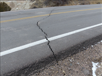 Asphalt surface conditions, frost heaves and low spots. Cliff Shelf Area asphalt heaves.