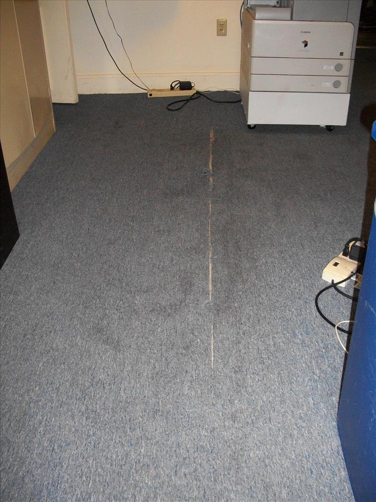Worn carpet in reception area