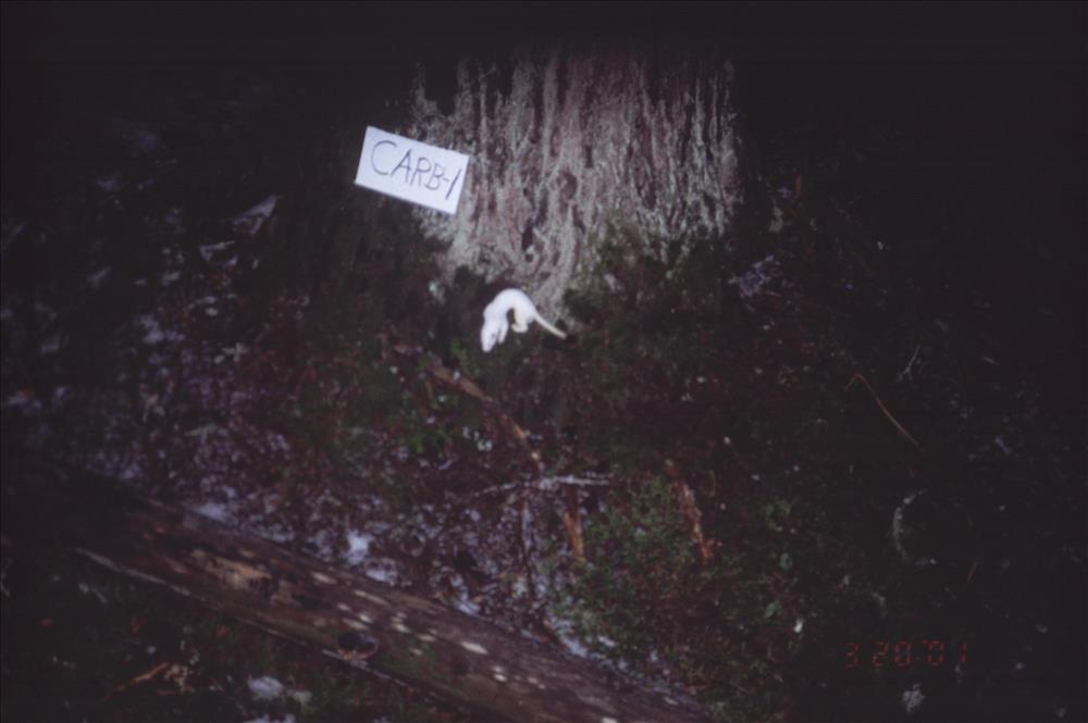 Long tail weasel photographed at night