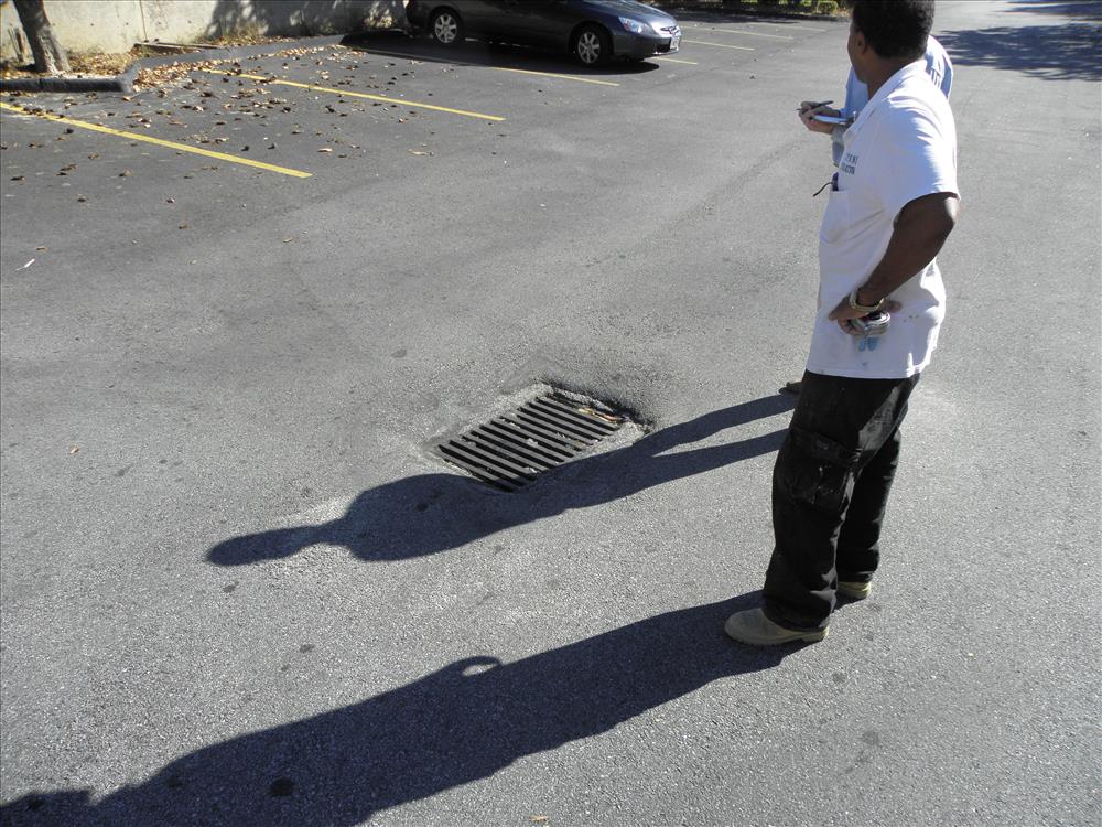 Plaster in the basement (Fellowship Hall) of Ebenezer Baptist Church is being damaged by water intrusion. It is occuring in the northwest corner of the room, but so far not in the staircase just to the north of the basement. Several blocks drain through storm-sewers toward the adjacent catch-basin, and about half of the block drains on the surface toward this basin.