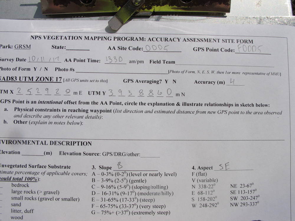 GRSM Accuracy Assessment. Plot Code: GRSM_AA_0005_1
