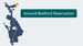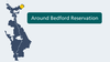 Blue illustration of an irregularly shaped park boundary and a winding river in light blue down its center; at right, text: “Around Bedford Reservation.”