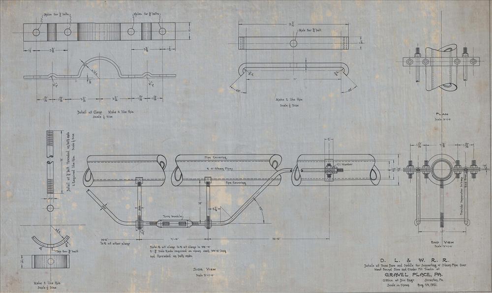 093-20.LK--Truss bars and saddle for 4-inch steam pipe--Gravel Place, PA
