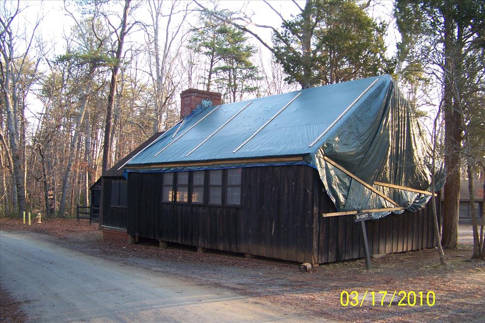 Roof replacement of B-12 lodge in Cabin Camp 5 at Prince William Forest Park in March 2010