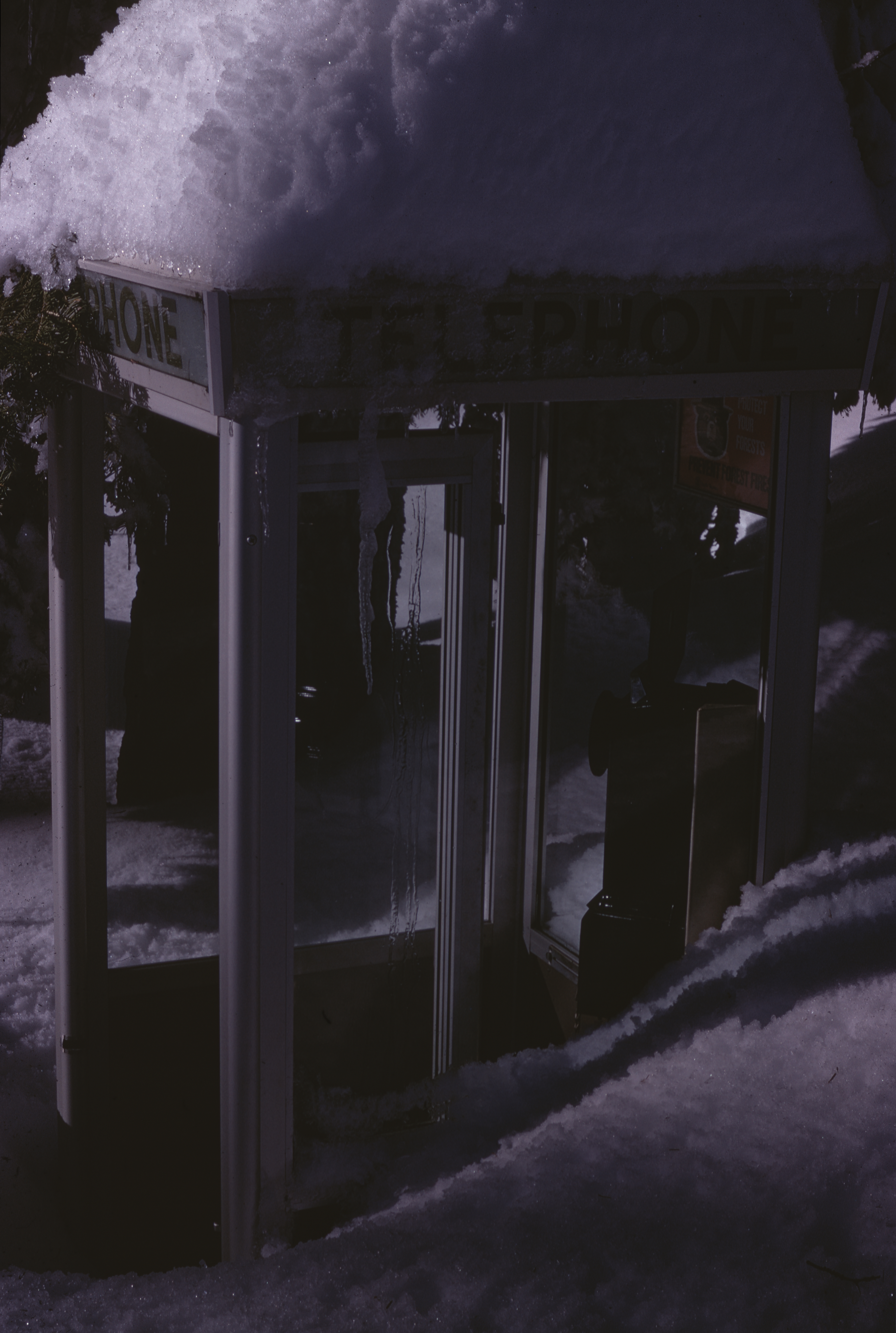 RD27. March 1969. "I think this is Crane Flat". [Telephone booth covered in snow]. Robert Dunnagan. J-01-25-027.