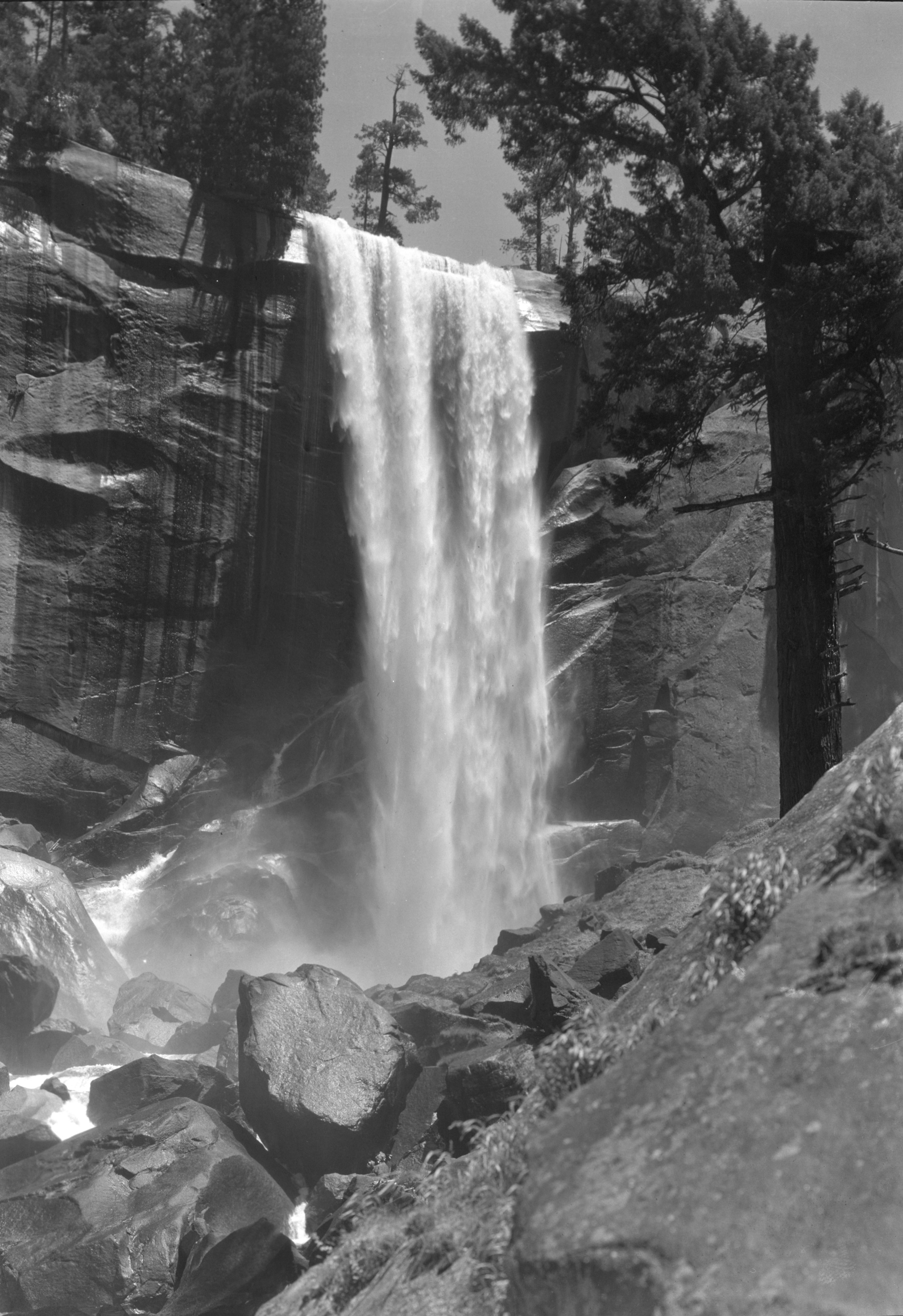 Copy negative of three stereographs. One of Vernal Fall by Thomas Houseworth, two by C. E. Watkins. Copied by RHA in June 1952.