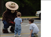 Smokey kneeling with two boys