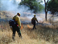 Prescribed burn using drip torch ignition at Ash Mountain Headquarters, Sequoia and Kings Canyon National Parks, May 2004
