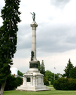 1 of 19 state & national monuments. Dedicated to officers & soldiers of NY who fell during Gettysburg Battle. Located in National Cemetery NE of Soldiers' National Monument. || Mn w/ statue. Mn base 27'8", stepped. 2 part shaft, 1st: sq w/ classical order motiffs, bronze tablets. 2nd: full order corinthian column w/ bronze alto-relievo, corps symbols, badges, sheilds. Topped by bronze NY statue. All 93'H.