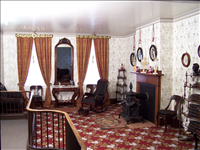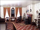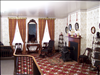 Images from the interior of the Lincoln Home. The wallpaper, carpeting, and draperies are reproductions of period patterns. Artifacts in the photos - furniture, dinnerware, knick-knacks, etc. - are largely period pieces, with only a handful of reproductions.