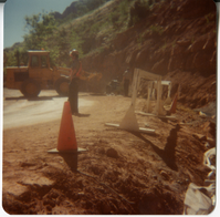 Men positioning traffic cones and preparing roads for chipsealing. ; ZION Museum and Archives Image 002.12.05-17of23 ; ZION 15933