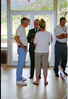 Color Photos of the opening celebration for the new visitor center - Same day as the official shuttle launch. Superintendent Donald A. Falvey speaking with visitor. ; ZION Museum and Archives Image 800_20_02035 ; ZION 15933