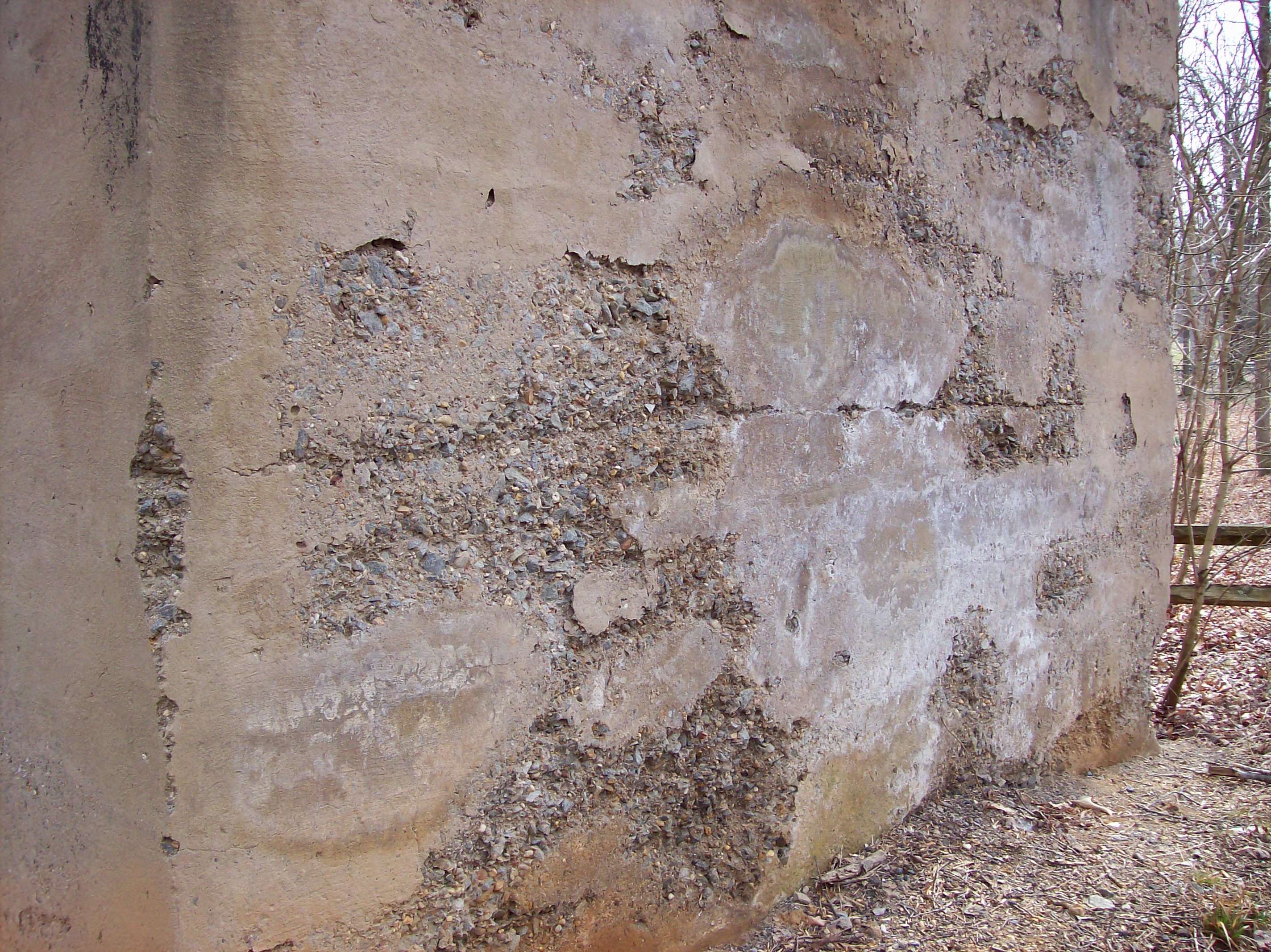 The Battery Emory Fire Control Tower has innumerable signs of damage including spalding, cracked, chipped and other destabilized concrete over more than 90% of the surface.
