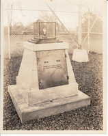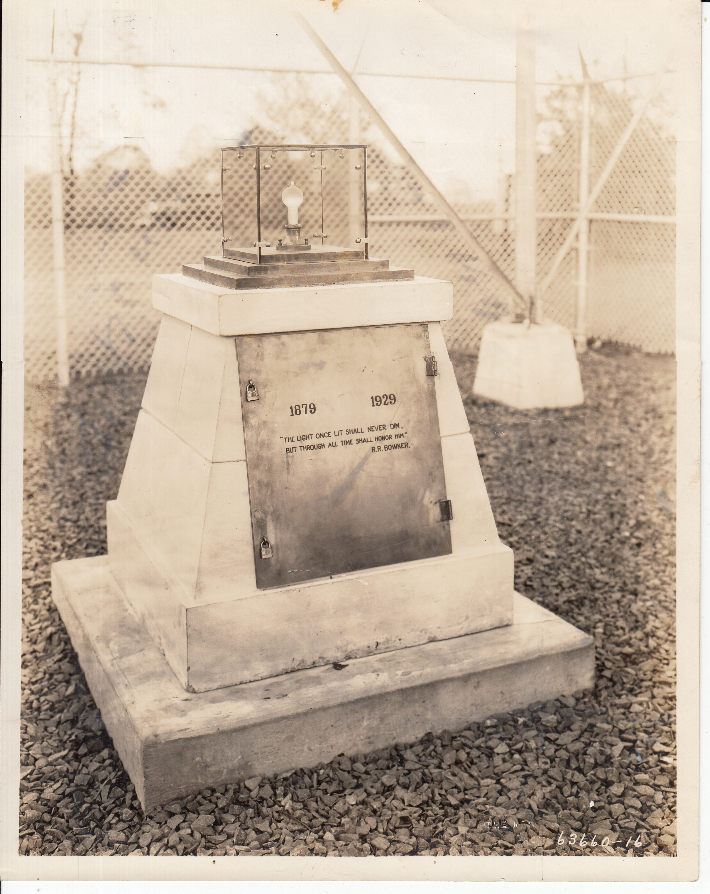 "Perpetual Light" at base of first Edison Tower, Menlo Park, New Jersey, model of incandescent lamp atop concrete pedestal.