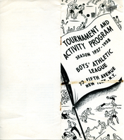 Booklet from Boys' Athletic League titled, "Tournament and Activity Program/ Season 1937-1938/ Boys' Athletic League/ 70 Fifth Avenue New York, N.Y." Booklet contains information of organization, calendar of events, committee chairmen, regulations, and information on each tournament. Includes list of sponsors and additional services. See following entries for other pages: "Booklet, Boys' Athletic League, 1938 p.1.tif" to "Booklet, Boys' Athletic League, 1938 p.8.tif"