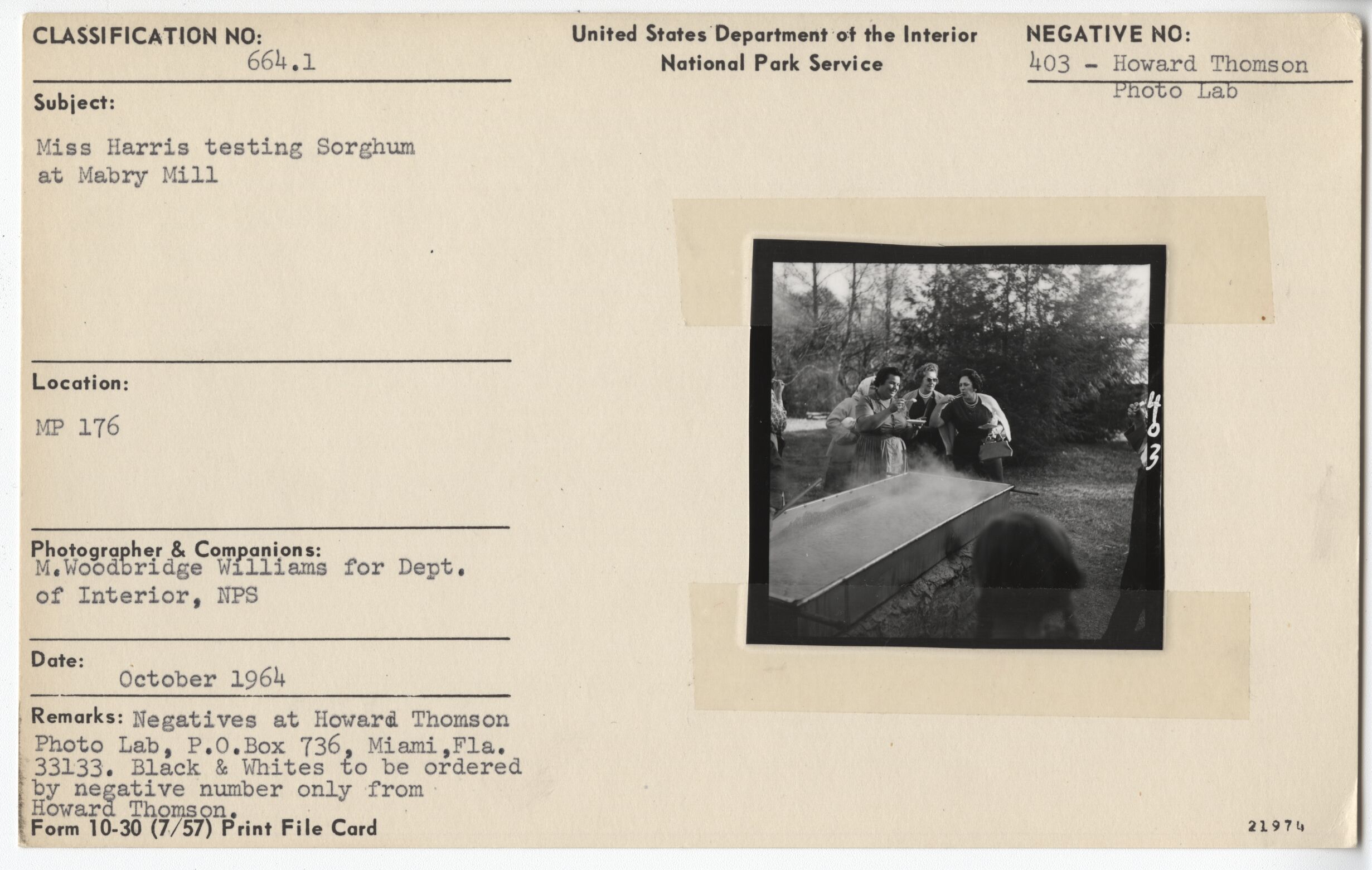 Miss Harris testing sorghum at Mabry Mill