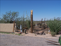 One of eleven broken power poles with electrical lines laying inside CAGR east boundary wall just south of entrance gate