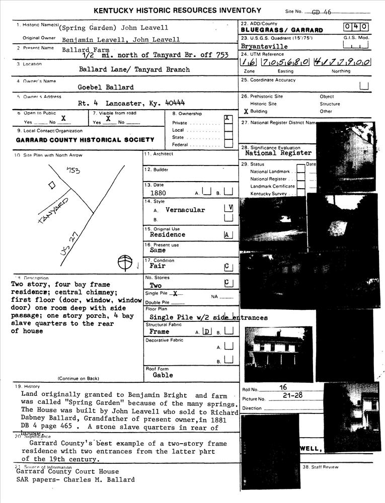 Bryantsville ; Ballard Lane-Tanyard Branch