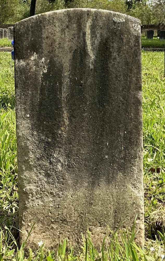 Back of historic upright marble headstone with recessed shield face.