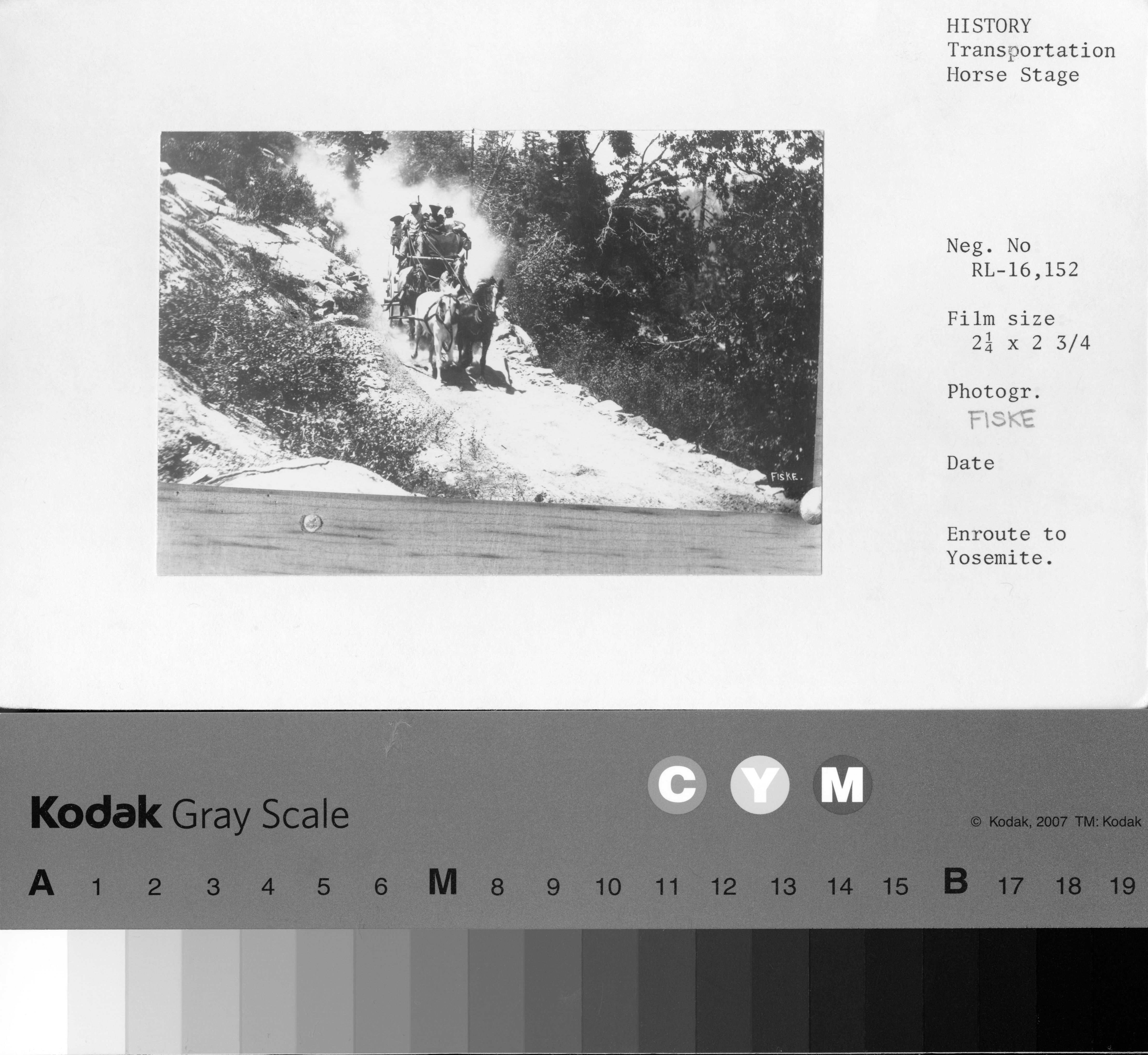 Copy Neg: J. Ernest, 1983. Yosemite Valley Stage. Original print in over-sized drawer in RL.