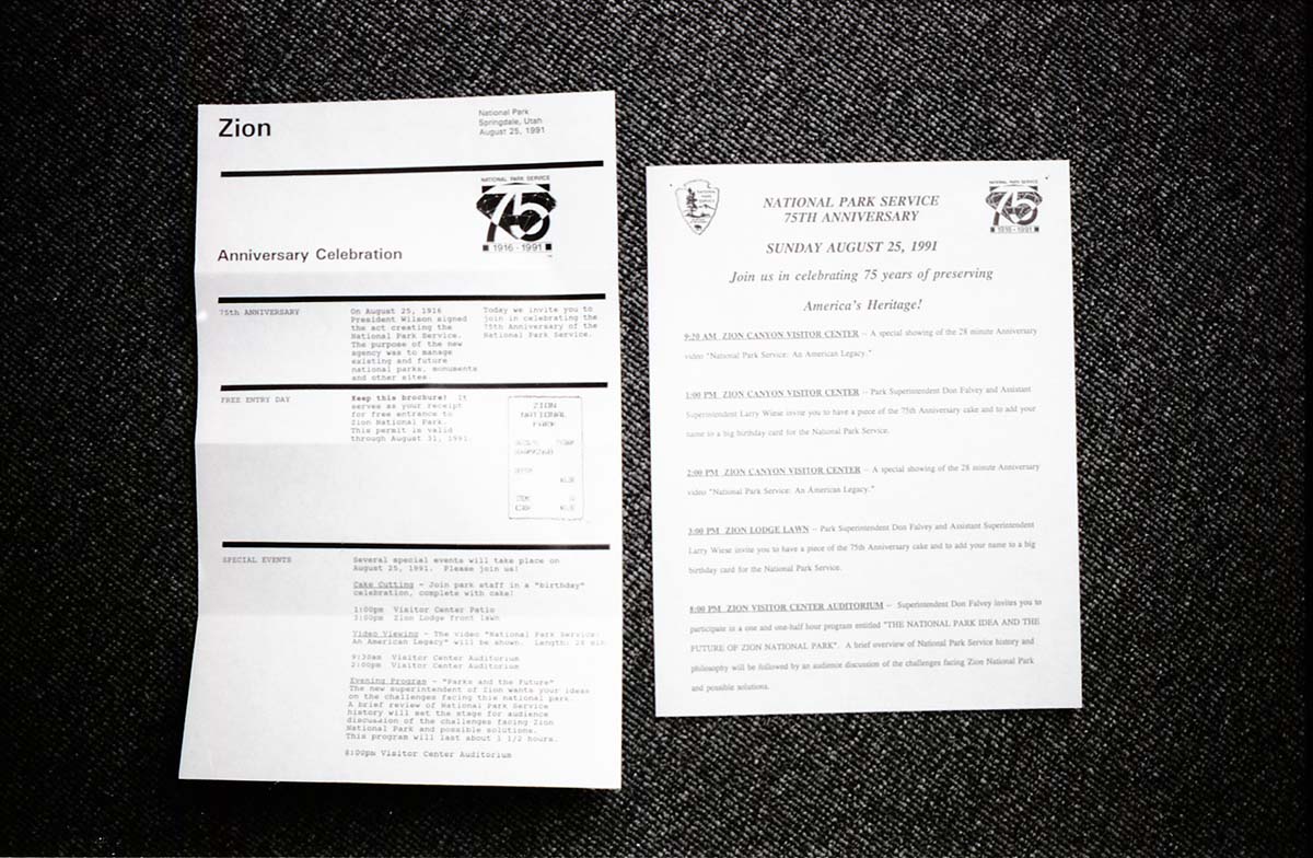 BW Photos of the parks 75th anniversary celebration. ; ZION Museum and Archives Image 800_21_02005 ; ZION 15933