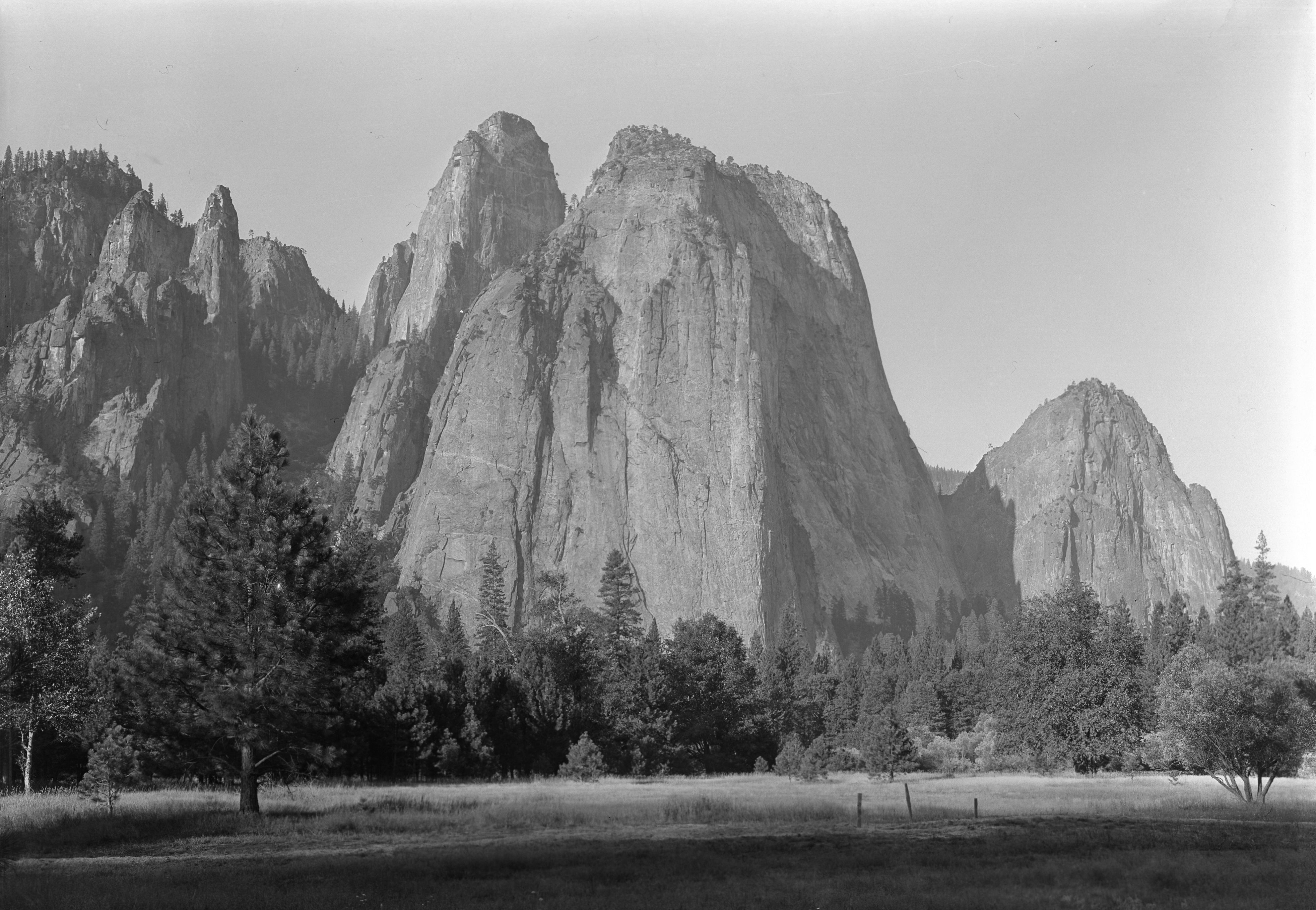 Copied by DC in 1935. Original taken by George Fiske. Clouds over Cathedral Rock. An interesting story is that Mr. Fiske was thrilled upon developing this negative to find the familiar face of a San Francisco friend outlined on the cloud in the center. "Wh