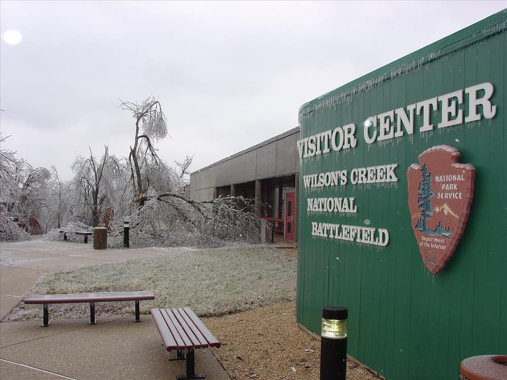 The entire park is in a Federal Disaster area due to damages from an ice storm that began on January 12, 2007. During the evening of January 12th ice quickly formed on trees and power lines. The park and approximately 75% of NPS employees duty stationed at Wilson¿s Creek and Missouri State University lost power to their homes. By January 13 power was out to most park buildings and downed trees and tree limbs blocked access to roads, buildings, and trails. Ice and rain continued to fall on January 13 through the 14th with total ice accumulations in excess of 1.5 inches.