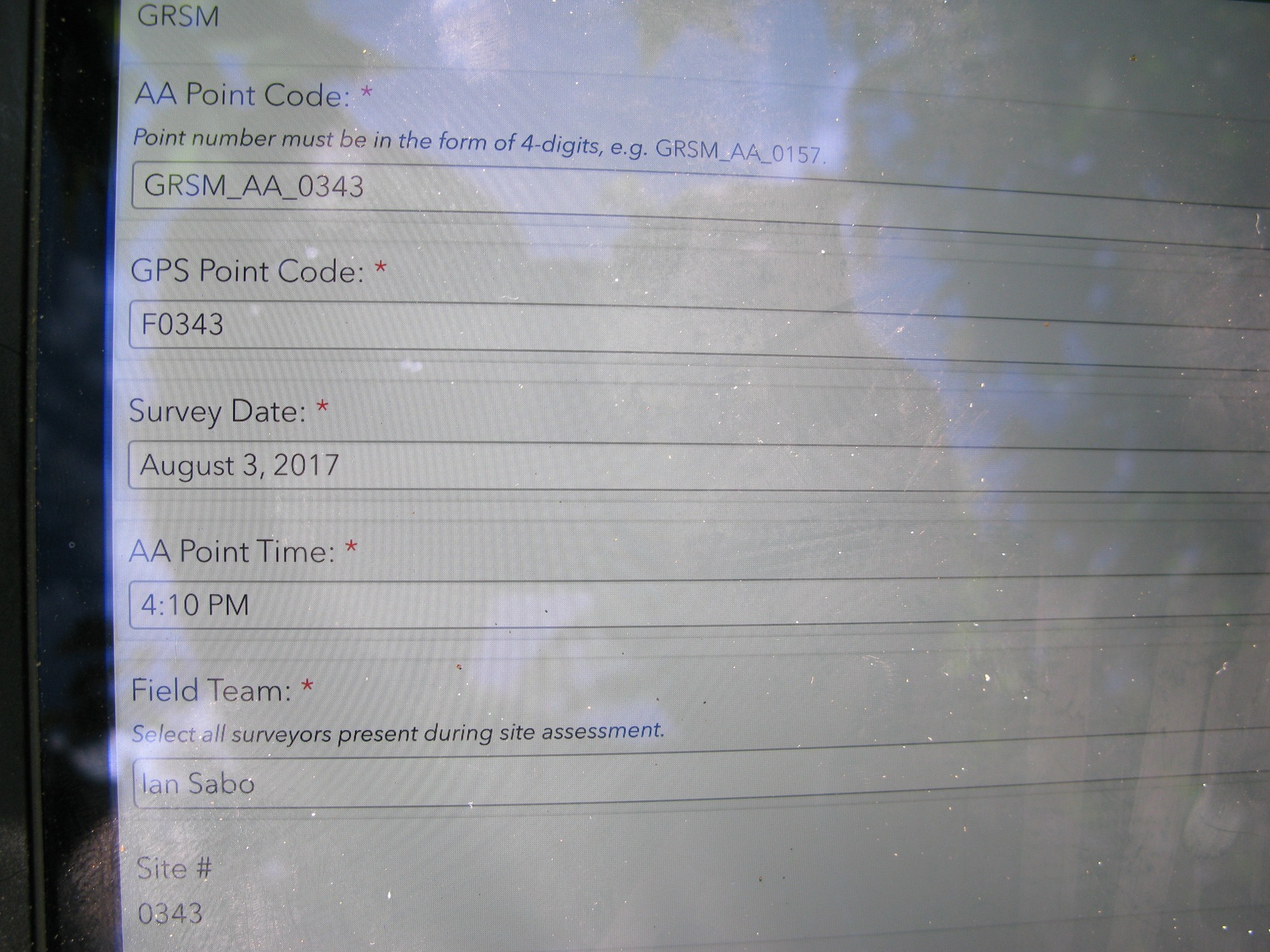 Plot Code: GRSM_AA_0343_1 from the Great Smoky Mountains National Park (GRSM) Accuracy Assessment.