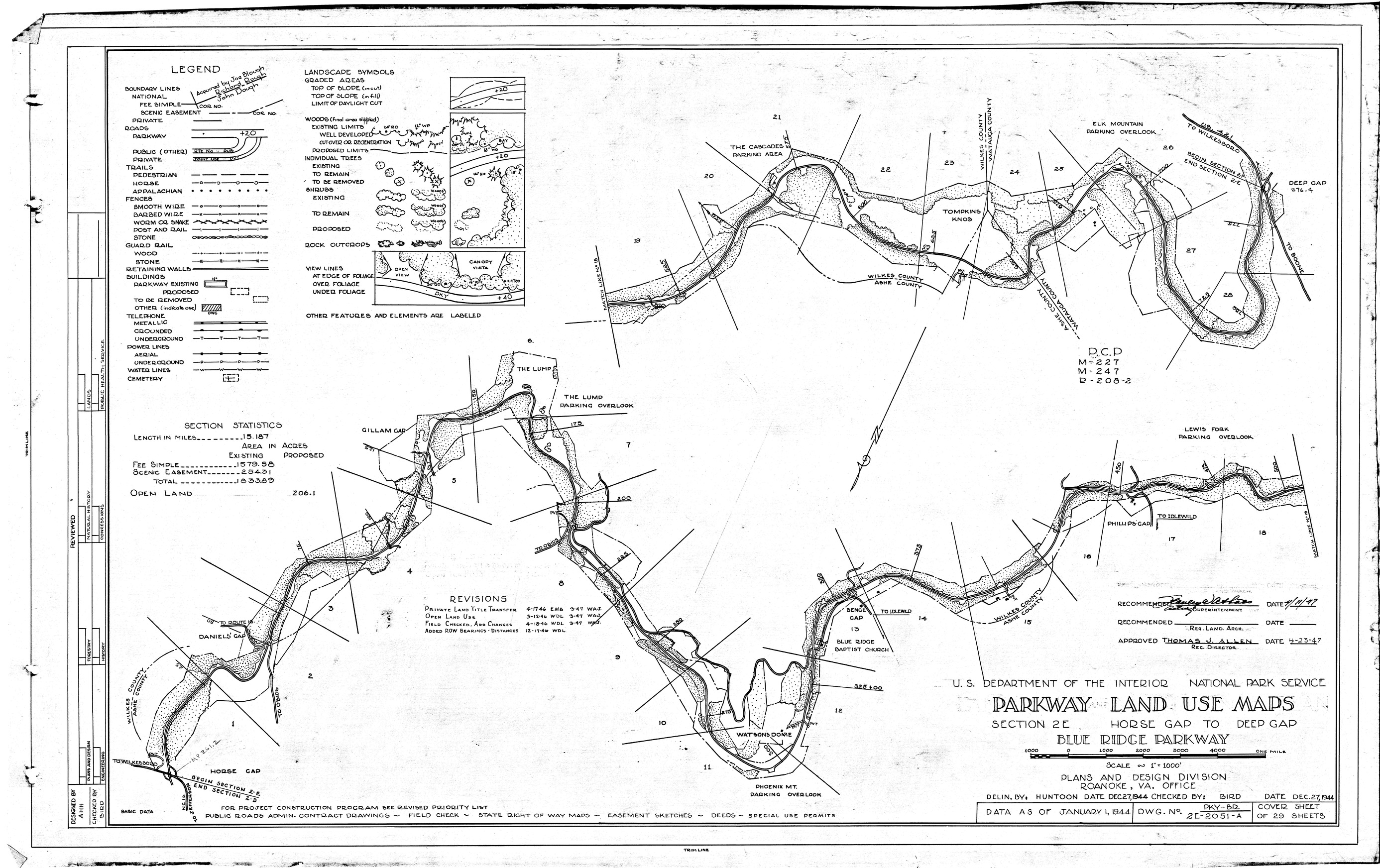Section 2-E shows land use from Horse Gap (MP261.2) to Deep Gap (MP276.4). This document contains 30 pages.