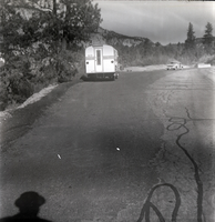 Truck driving on road during east side road repair and turn out construction. ; ZION Museum and Archives Image 002.13.01-49of53 ; ZION 15933
