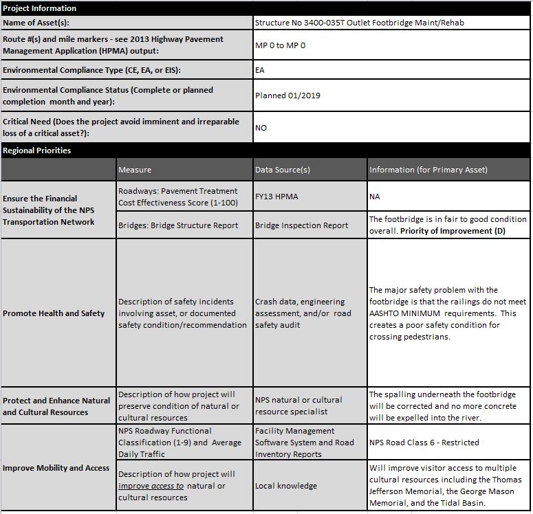 NAMA HPMA Project Tables for Prioritization