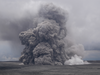 Cloud of ash and smoke rising from a volcanic crater