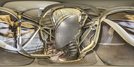 The inside of the Statue of Liberty’s lips and nose are visible in this view, also visible to the side of the stairs is the restricted access area for the arm and torch access ladder.