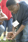 Students are participating in a unit called Roles and Residences. They are exploring the roles of different species and the diversity of habitats in a watershed. Here they are studying a pond ecosystem, catching small animals in nets and observing them in containers. Students record data in their Discovery Books. || The Cuyahoga Valley Environmental Education Center's residential program provides fourth through eighth grade classes an overnight educational experience that integrates science, nature study, environmental issues, and the arts. Students learn natural history and the concepts of watershed, biodiversity, and habitat. In addition, environmental issues and the process of environmental decision-making are explored. The curriculum is designed to meet state standards and teach proficiency skills, especially in science and social studies.