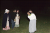 Volunteers practive their roles in a scene where a runaway slave is captured. || Cuyahoga Valley National Park interprets Ohio's Underground Railroad heritage because the centerpiece or our park, the Ohio & Erie Canal, was a likely route traveled by runaway slaves. Experience the Underground Railroad, offered each November, places visitors in the role of an escaping slave. The program is part of the National Underground Railway Network to Freedom which recongnizes historic sites, facilities, and programs that have a verifiable association to the Underground Railroad. The photos show volunteers at the dress rehearsal.