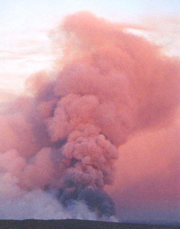 Intense burning with heavy gray and black smoke and flames during the Bircher fire, Mesa Verde National Park, July 2000