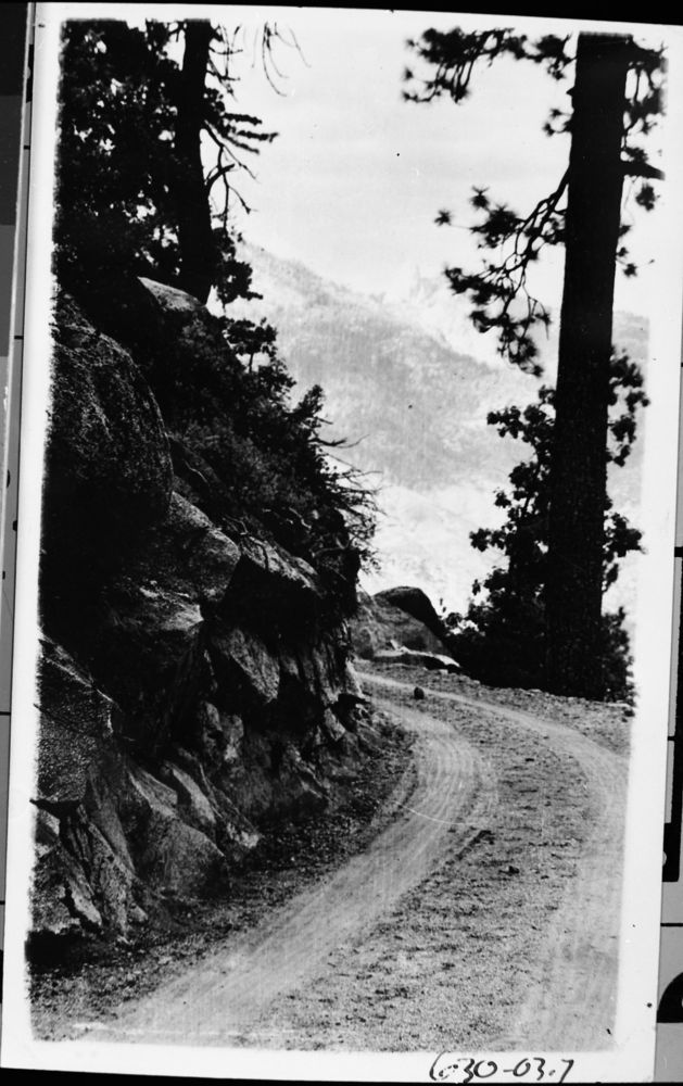 Unknown Photographer, unknown date, Hume Lake area, Giant Sequoia National Monument, Roads, early Kings Canyon Road. Misc. Domes - The Obelisk.