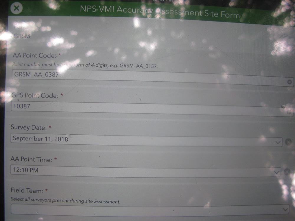 Plot Code: GRSM_AA_0387_1 from the Great Smoky Mountains National Park (GRSM) Accuracy Assessment.