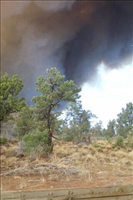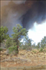 Full fire with black smoke in wooded areas during Long Mesa Fire at Mesa Verde National Park, July 29-Aug. 4, 2002