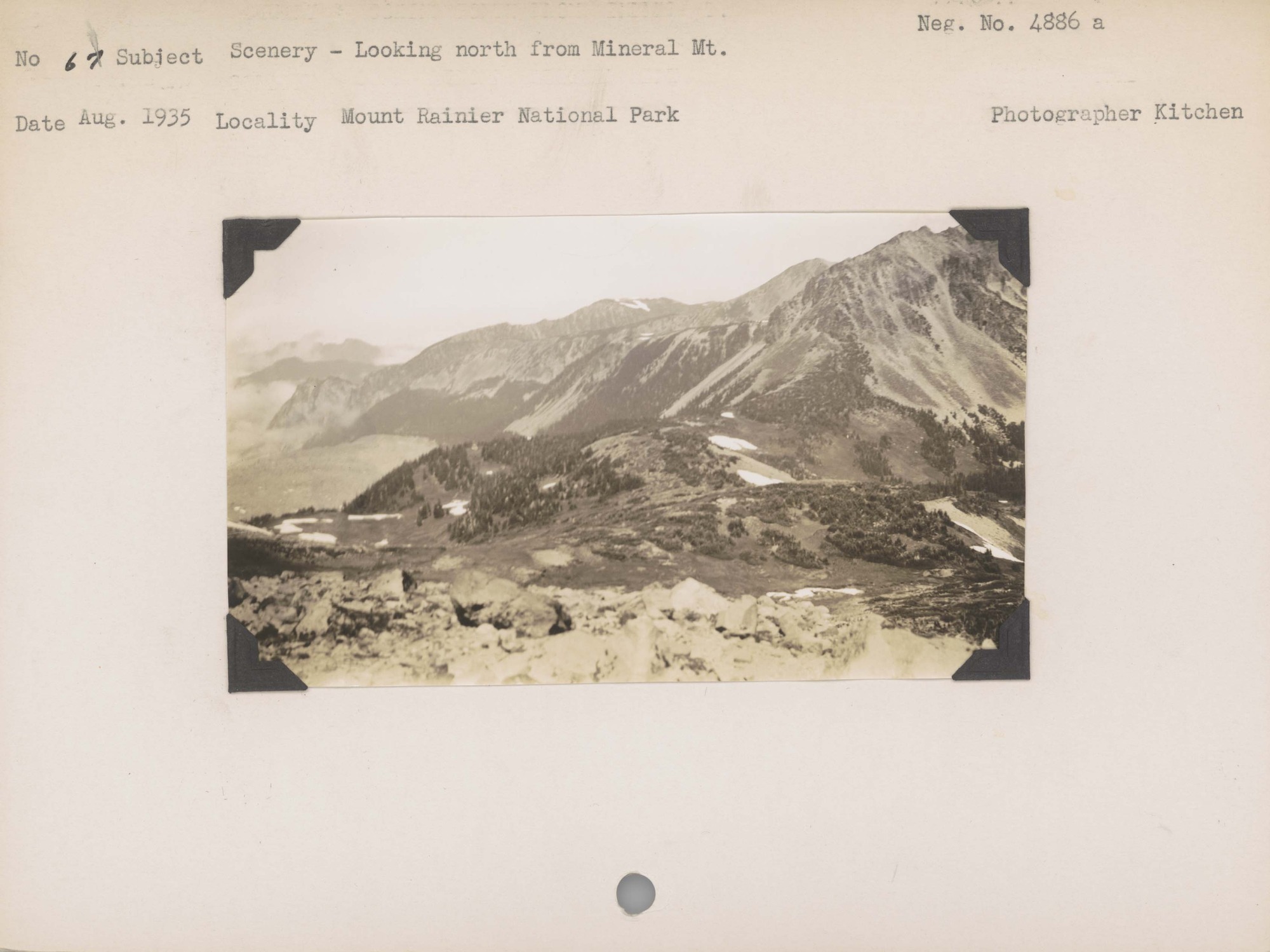 Scenery – Looking north from Mineral Mountain. Negative #: 4886. Location: Mount Rainier National Park.