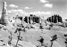 View looking east toward Mormon Temple group in Bryce Canyon National Park. Lot's Wife in foreground, Sene Castle and Mormon Temple.