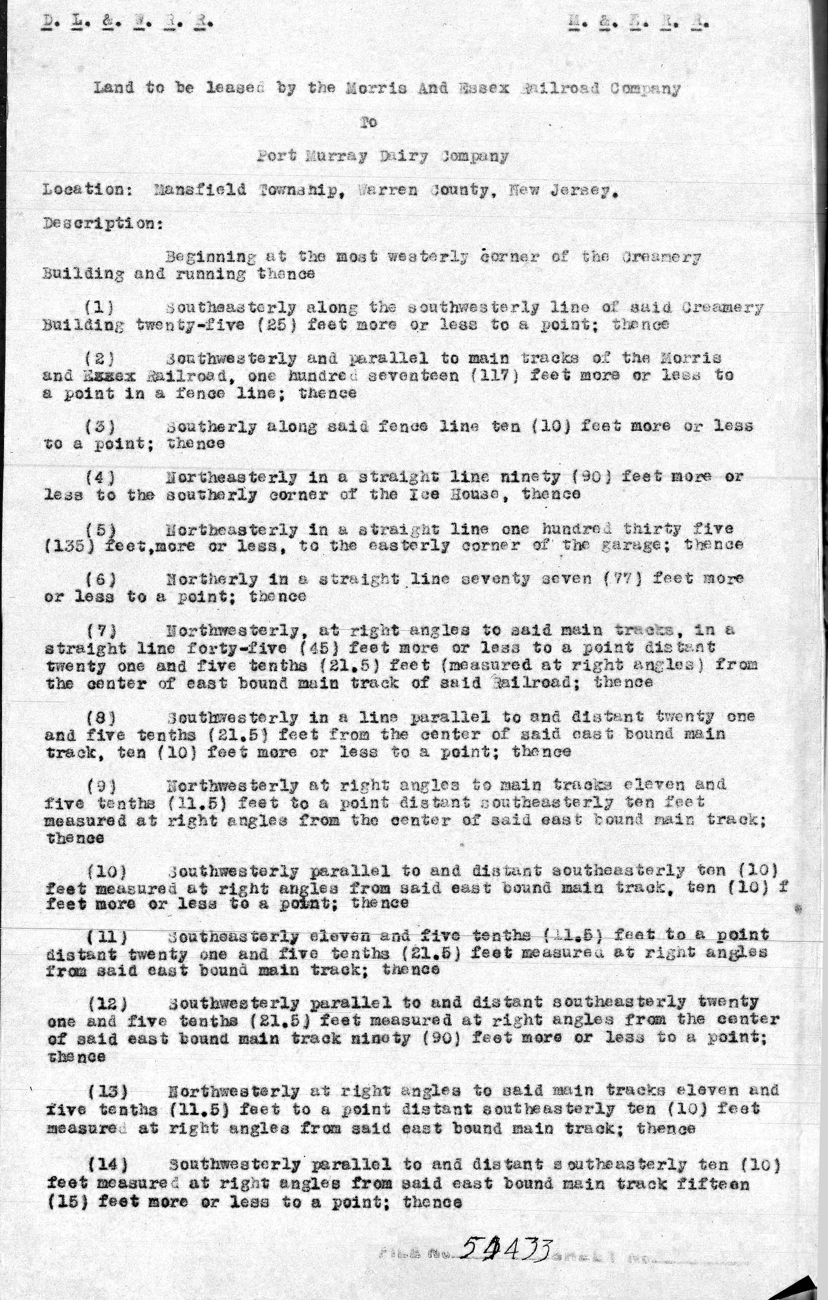 002 page 1 Description of Land to be leased to Port Murray Dairy Company--Port Murray, NJ--This document has 2 pages