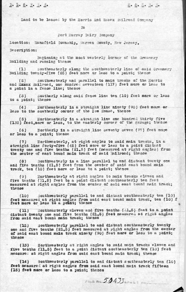 54433.BB--Land to be leased to the Port Murray Dairy Company--Port Murray, NJ