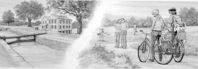 A bicyclist and hiker along the tow path near the Canal Visitor Center at Cuyahoga Valley National Park.