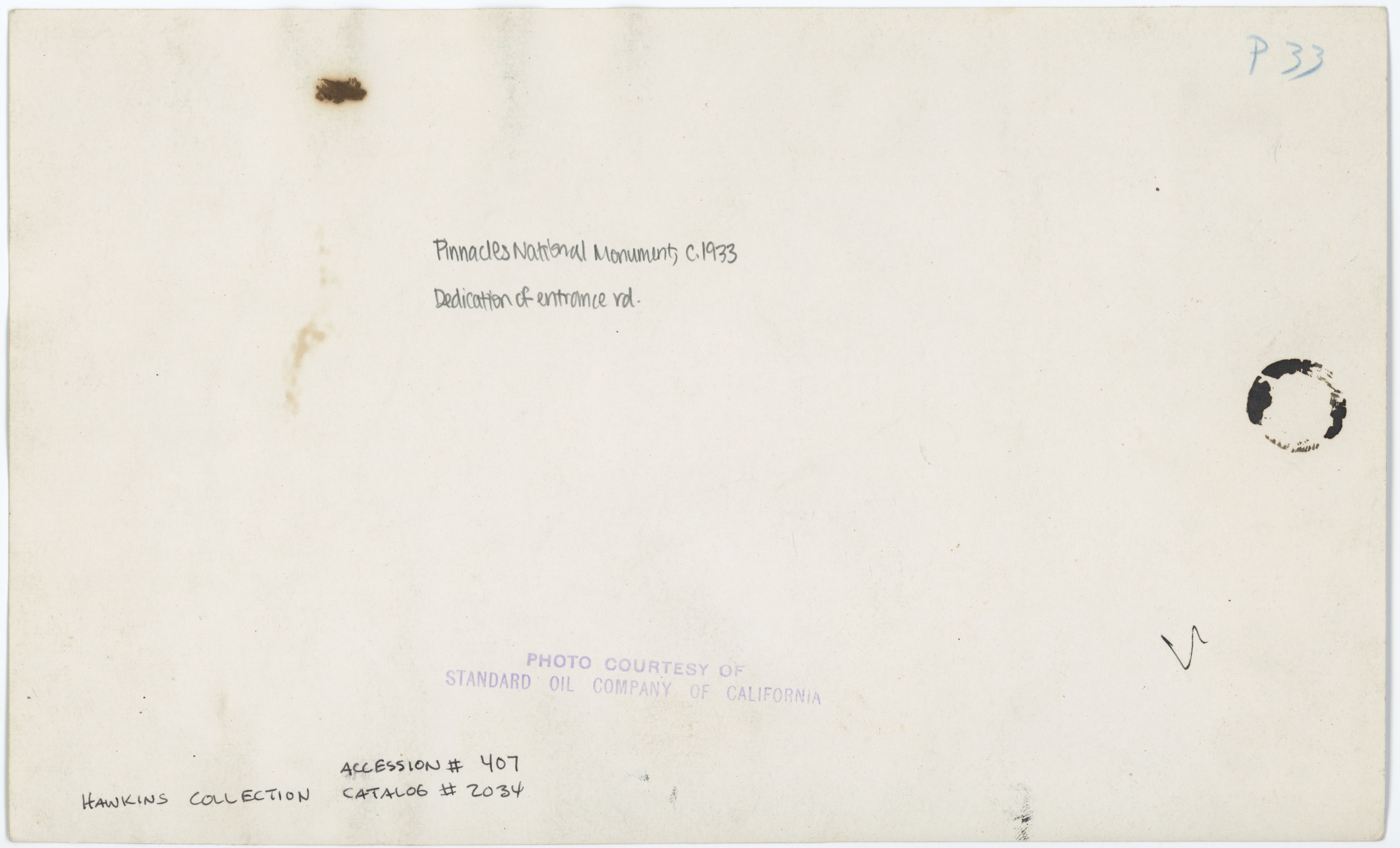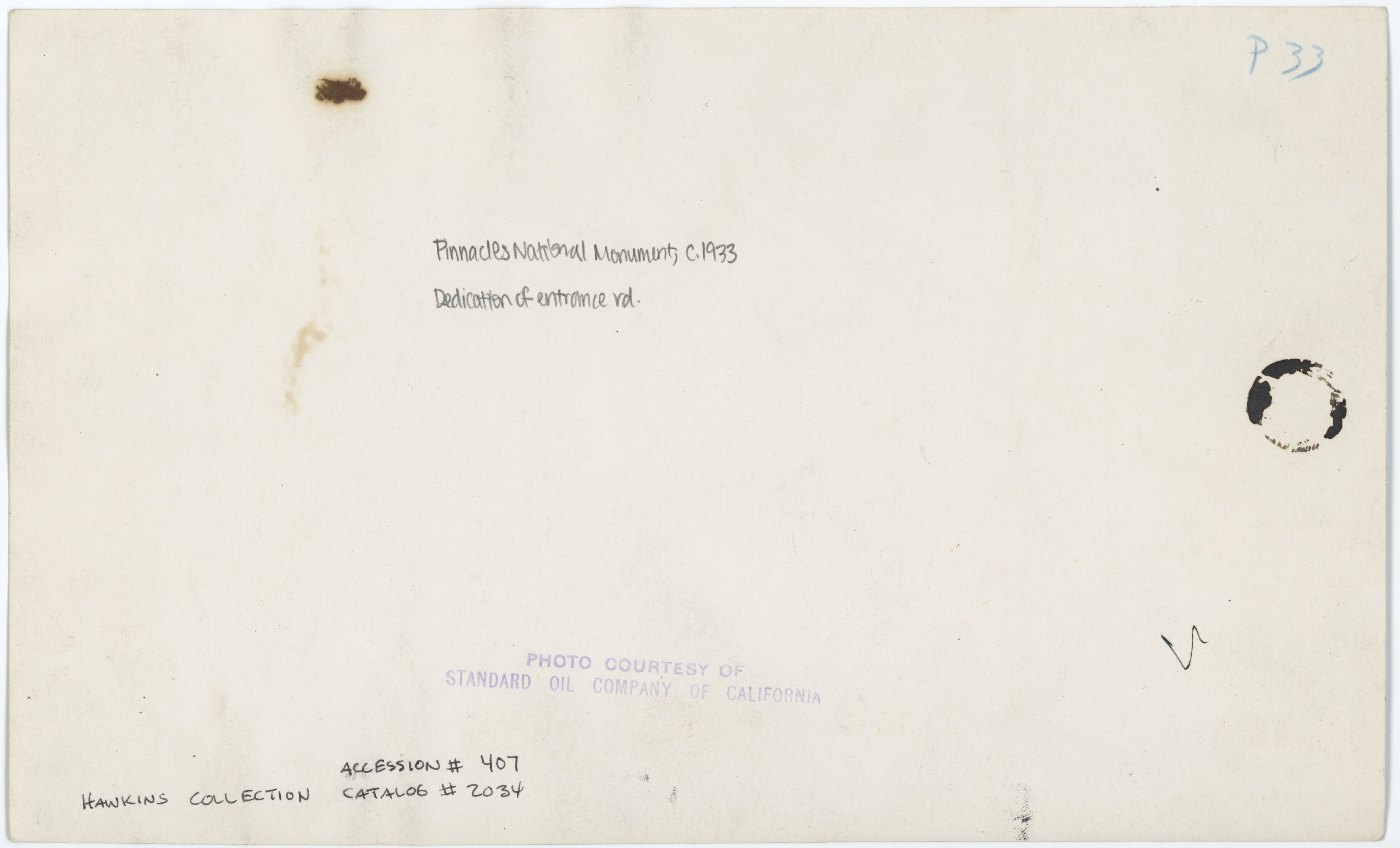 Original ID Accession # 407, Catalog # 2034, "Superintendent's trip 1927, Mesa Verde.", 10.25 x 6 inches