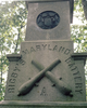 1 of 6 Monuments to Maryland. Indicates position occupied July 2-3, 1863. Located on Powers Hill in deep woods, N side Granite Schoolhouse Lane. || Mn, 1 cannon. Base 5'sq rough cut, tooled edge. 2 part stepped smooth-cut shaft. 1st, crossed cannon & incised regiment front, incised inscription rear. 2nd, incised inscription, bronze medallion. Pyramid cap w/ polished sphere. All 14'H.