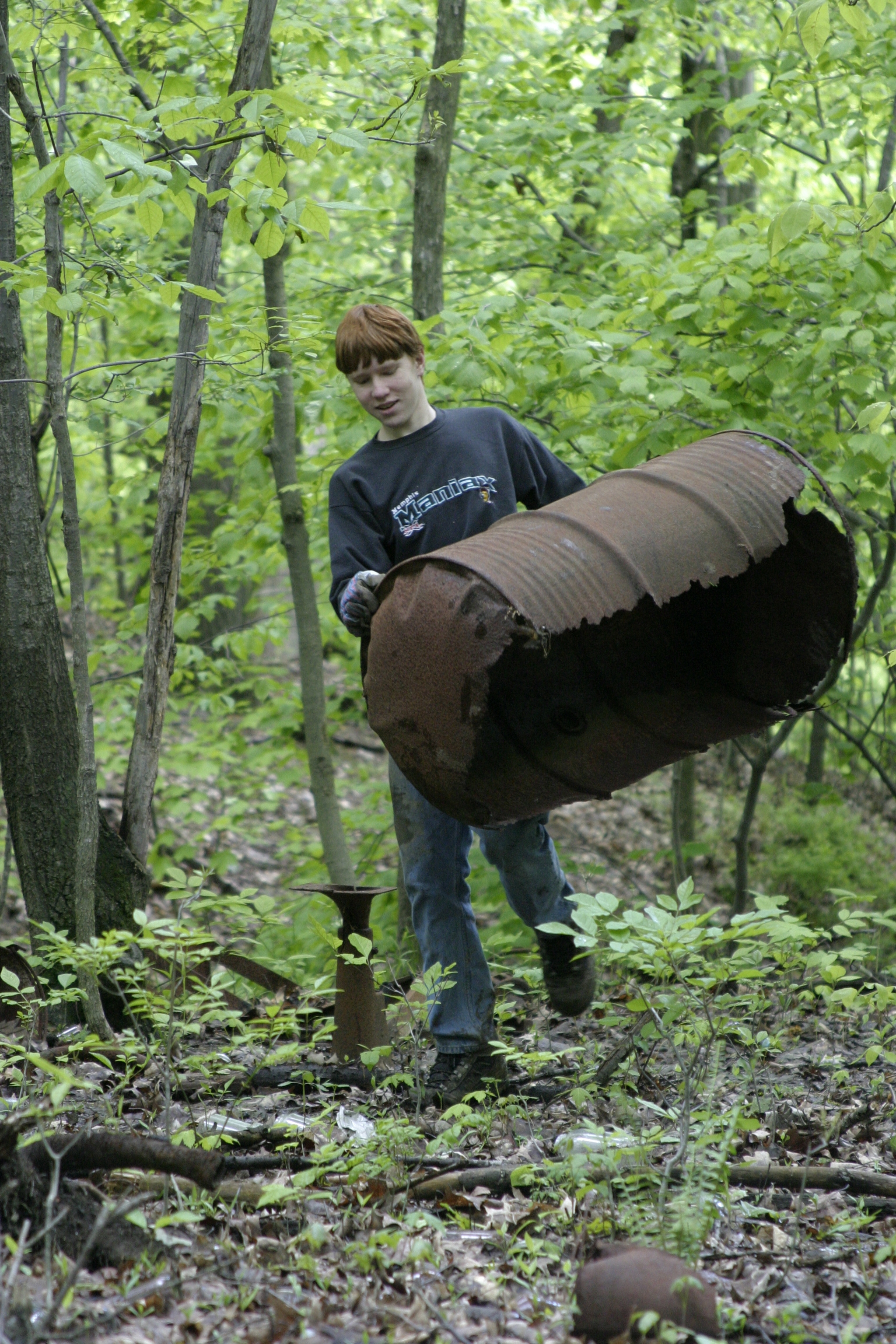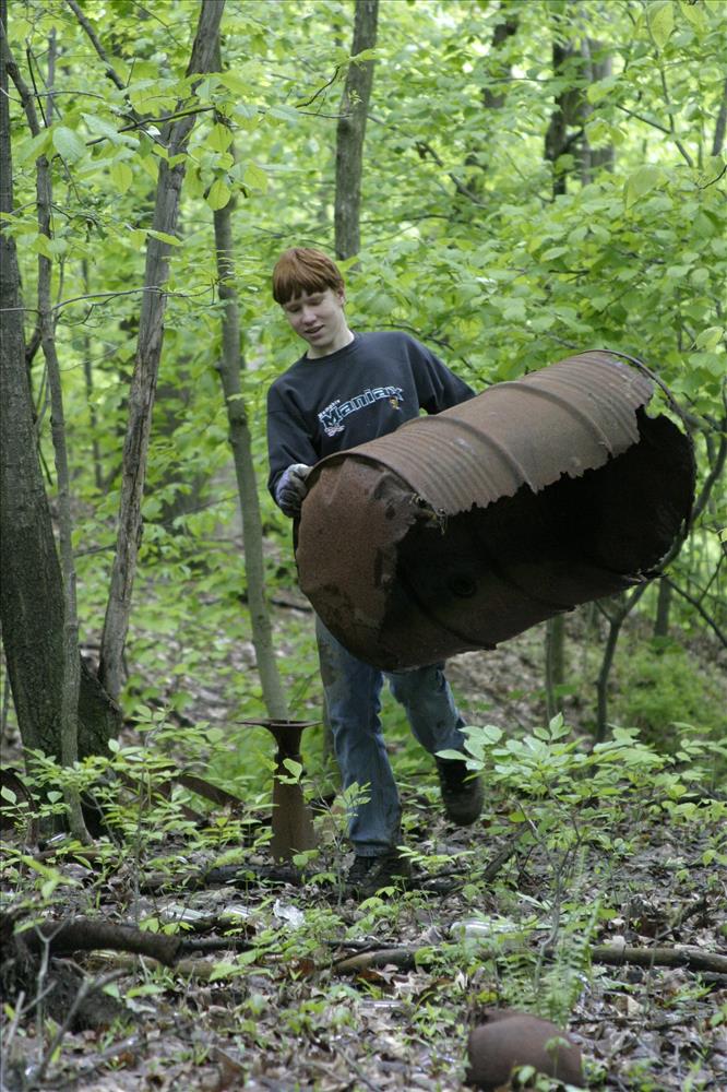 RiverDay is an an annual day of service and celebration in the Cuyahoga Watershed. Activities are coordinated by Friends of the Crooked River. Cuyahoga Valley National Park is a partner. Our volunteers remove trash from dump sites in several locations and invasive plants from the area around Howe Meadow. || Girl scout and other volunteers remove garbage from one of several trash dump sites on RiverDay 2006.