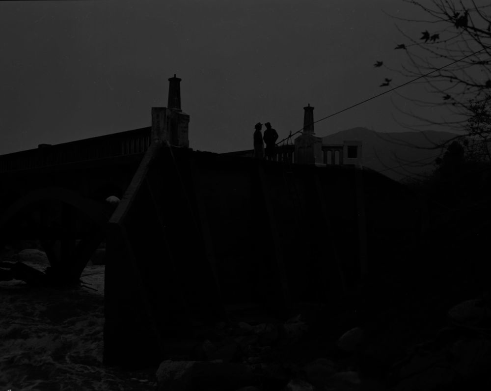 Wayne Alcorn, Middle Fork Bridge near Ash Mountain, Tulare County, Floods and Storm Damage, Bridges. Flood damaged bridge near Gateway Lodge. 551200.